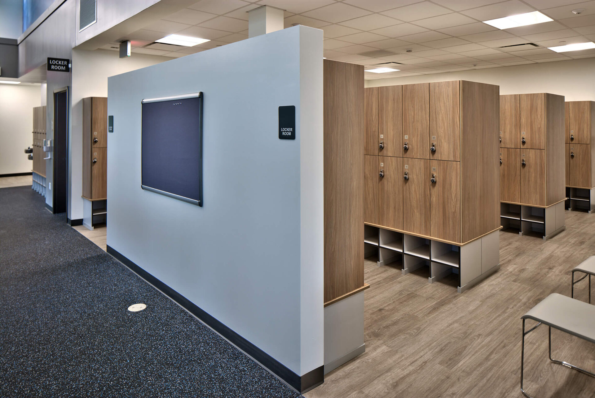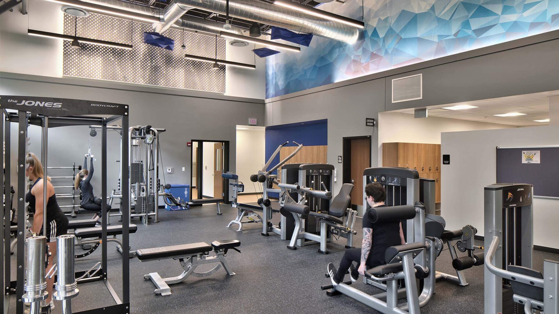 The new facility boasts a large fitness floor with brand new equipment, shower/toilet rooms, multi-purpose room, offices, reception, shared locker accommodations and an exterior covered patio for small group exercise. The design team paid special attention to acoustics, thermal comfort, equipment, security, material durability and member preferences during the design process which contributed to the success of this project.
