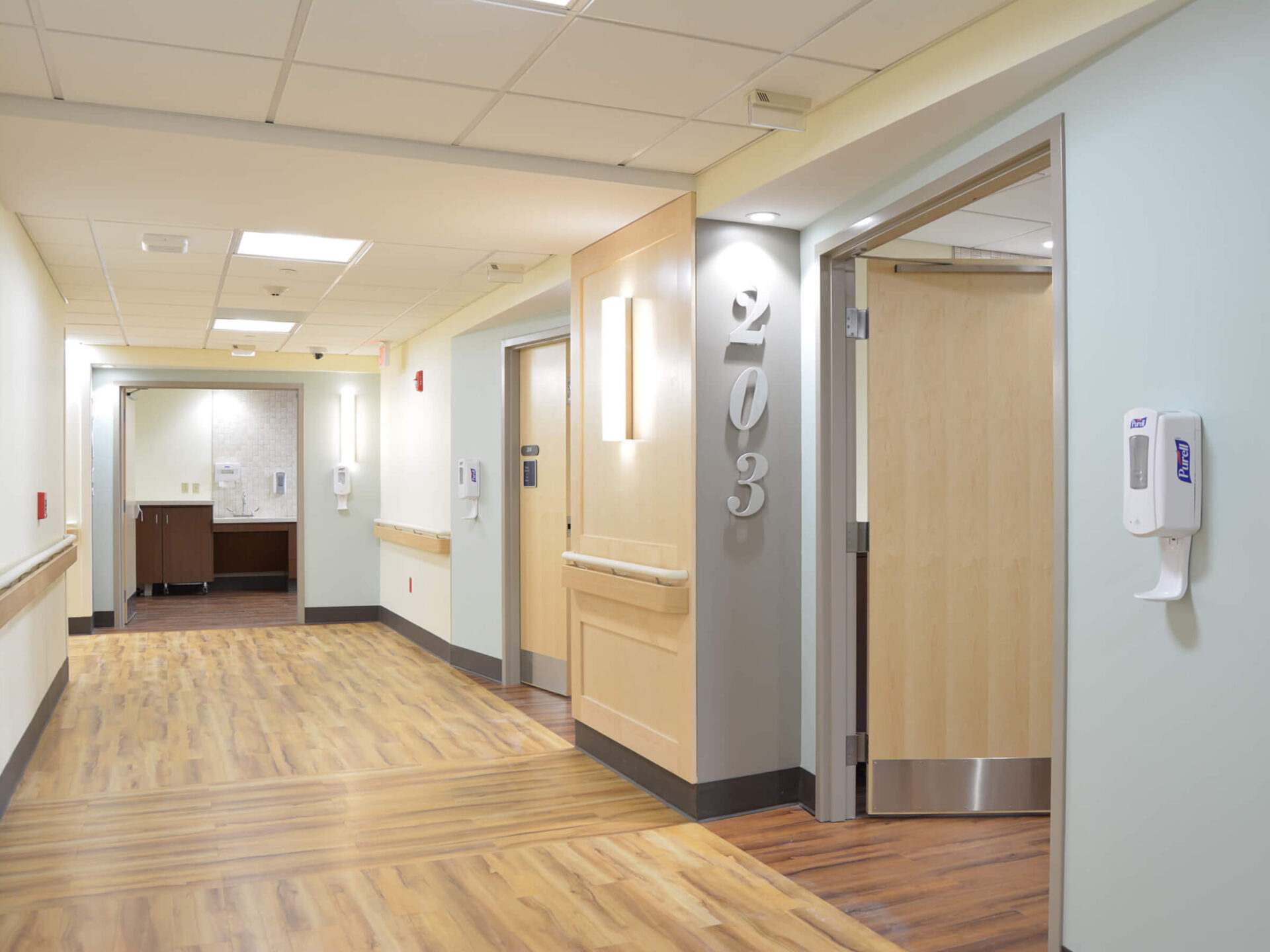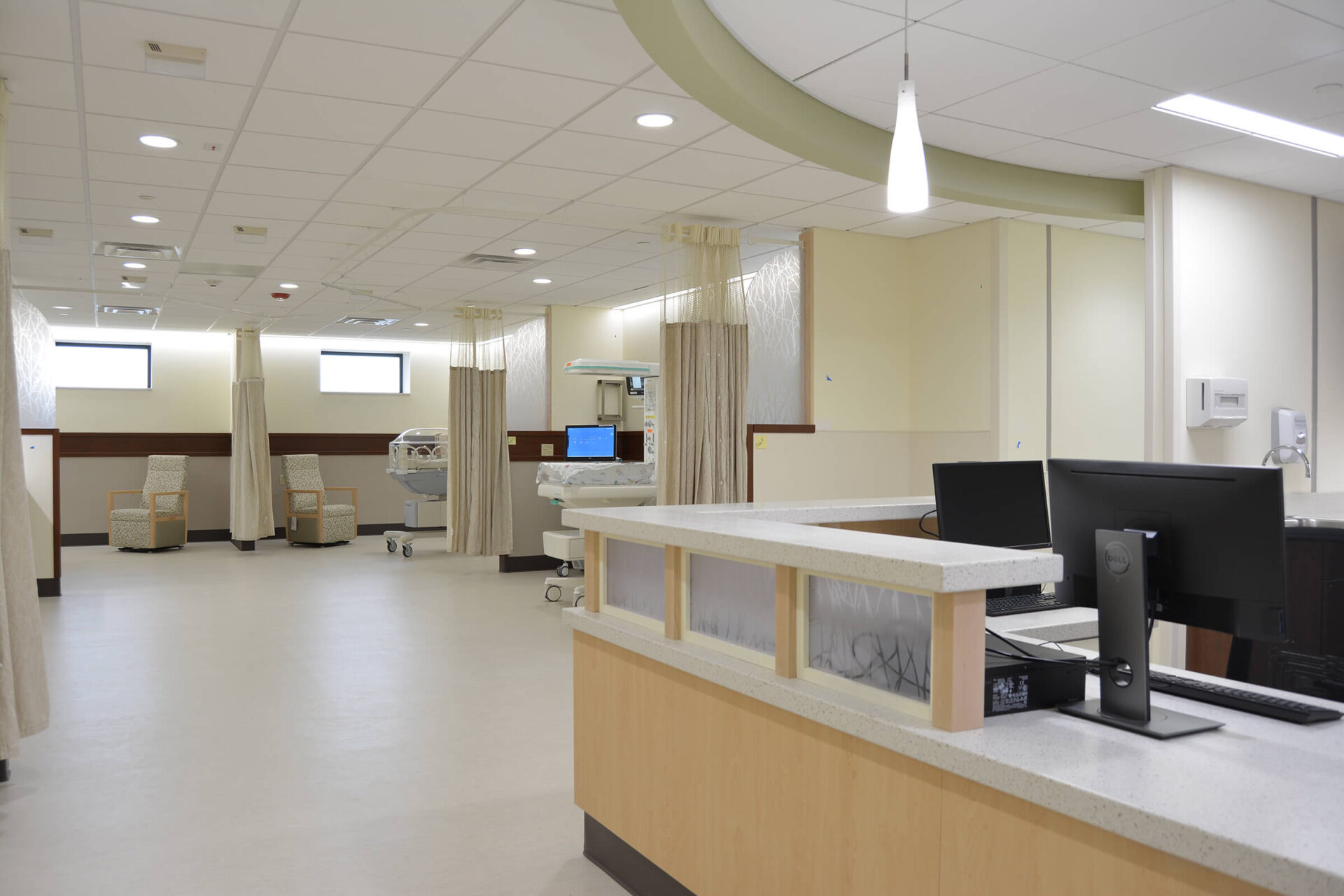 The Dwyer Architectural team provided services throughout all phases of design, from concept to construction documents for the renovation of the Community Hospital’s 53-year-old maternity unit and nursery.