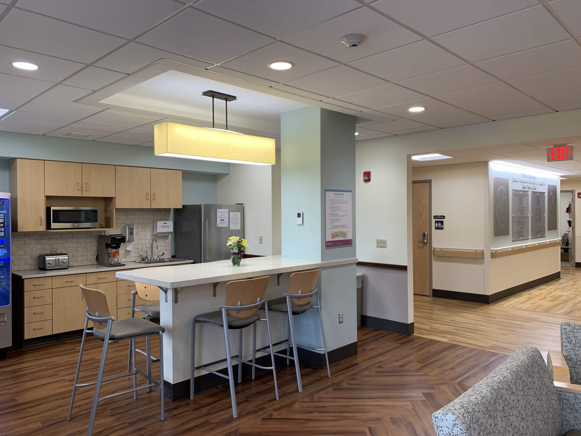 The unit also provides shared spaces where patients and families can gather, interact with other patients and share experiences. Dedicated lactation support space was designed to help educate and ease moms with the transition home.