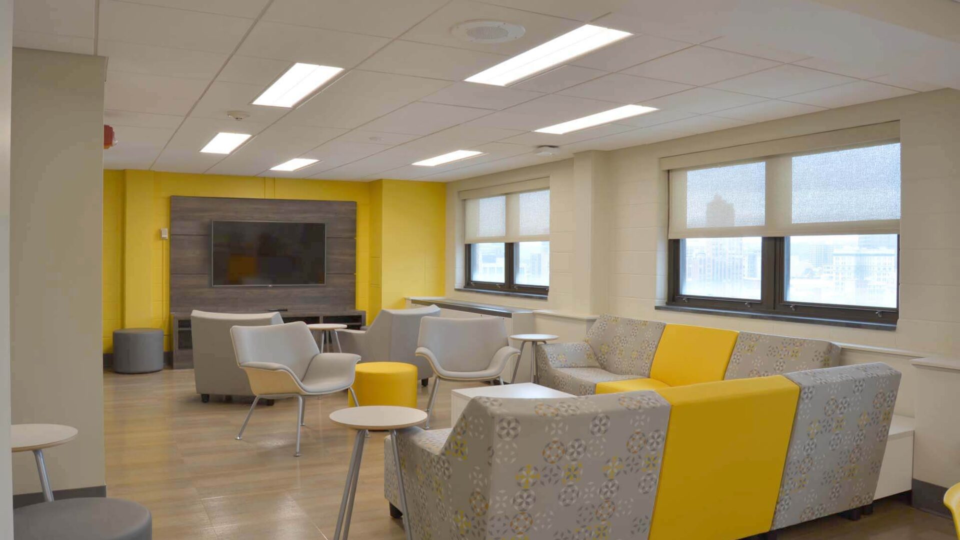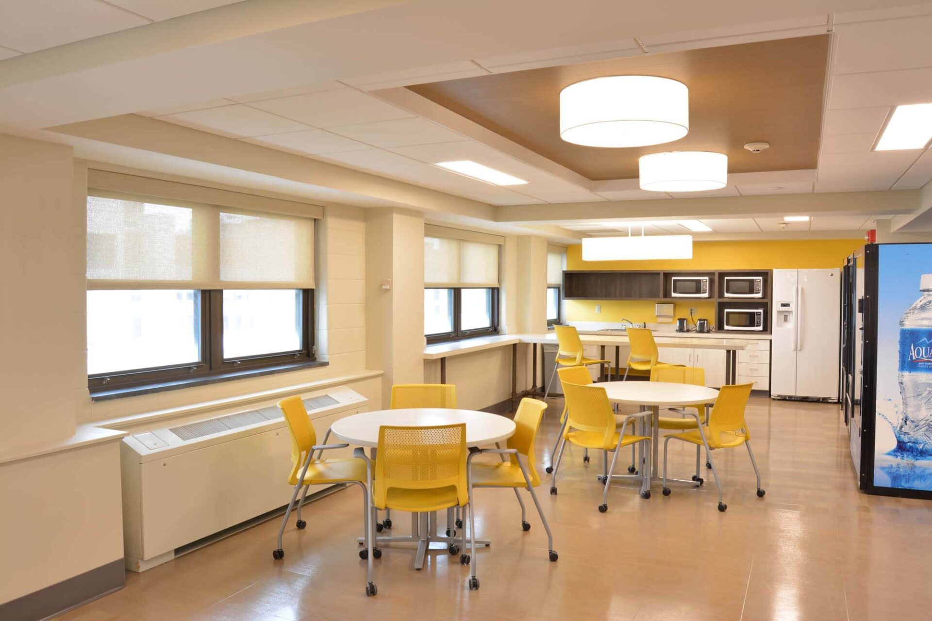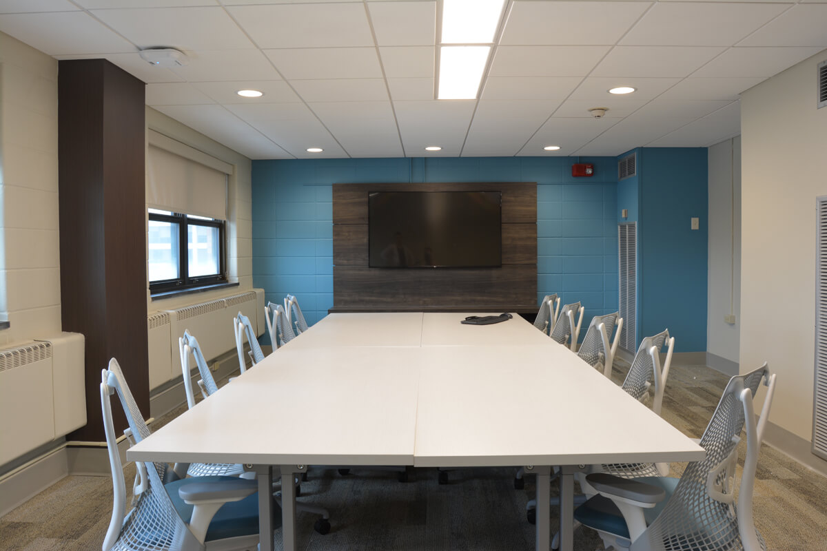 Dwyer was retained to design a new Student Collaboration Suite on the 6th floor of the College of Nursing which was formerly a convent. The interior renovation includes flexible student centered collaboration spaces with (6) testing rooms, (7) private group study rooms as well as a large conference room, quiet lounge, and a spacious student lounge with a kitchen.